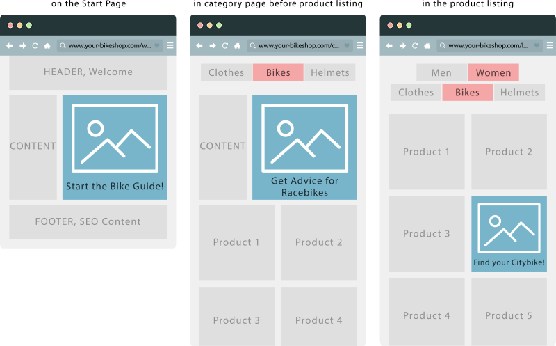 Excentos can interpret that the user is in the Womens section (eg. cookie, URL-parameter) and show women citybikes only