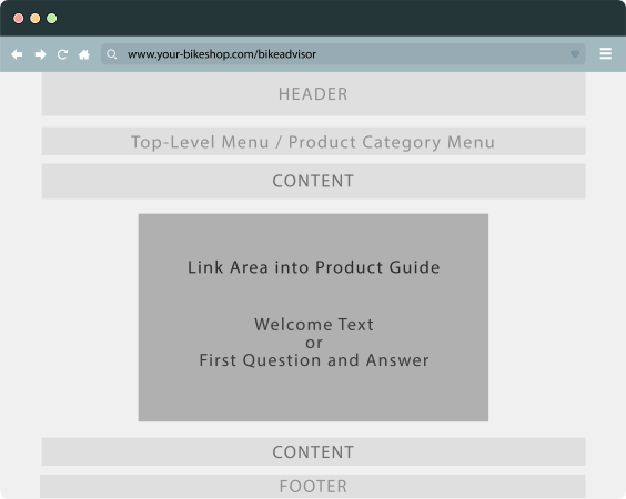 Teaser widgets ask the most important questions so the user quickstarts into a very relevant advisor process. Since they're interactive, they provide a strong pull (who can resist a slider? ;-). You can create one teaser widget per context and thus intelligently pull into different advisor sessions.