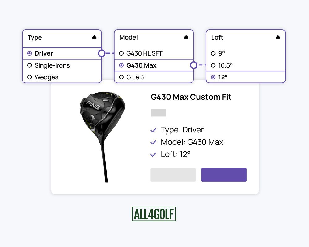 To simplify further, let's explain with a practical example: With the 2D golf club configurator from All4Golf, customers can customize their ideal golf club. The embedded logic ensures that product features such as loft, material, shaft, and grip are harmonized with each other.