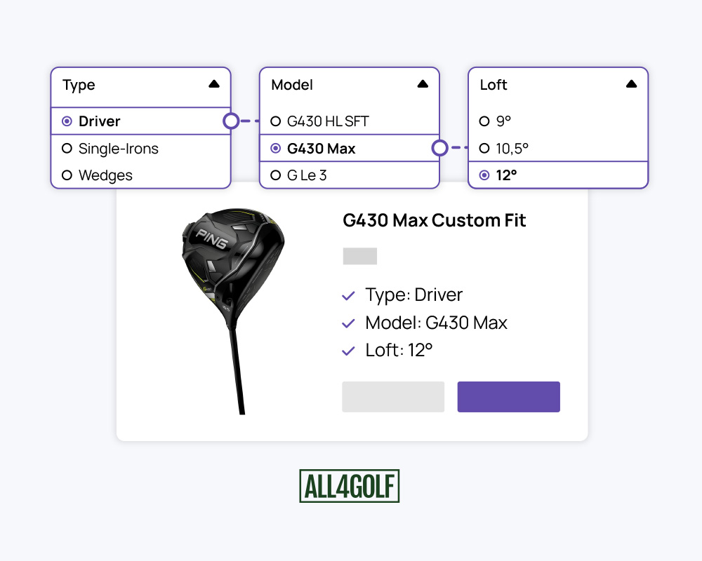 To simplify further, let's explain with a practical example: With the 2D golf club configurator from All4Golf, customers can customize their ideal golf club. The embedded logic ensures that product features such as loft, material, shaft, and grip are harmonized with each other.