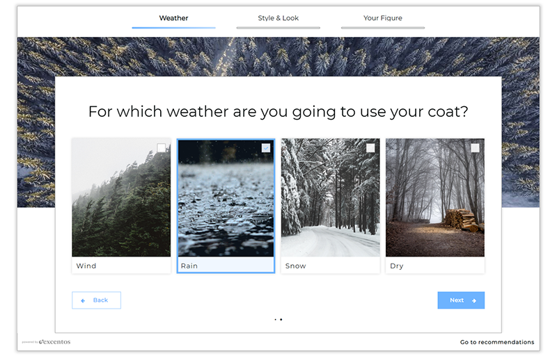 Coats come in many types and hence possess many characteristics or product features. For some customers the material might be more important than the design, and vice versa. The Coat Finder tool can handle a huge inventory and can be programmed to address multiple types of needs simultaneously.
