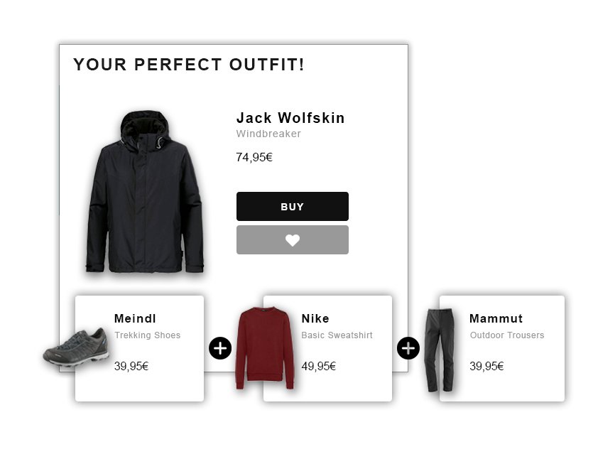 Recommendations can also be strategically adjusted to ensure that they support your sales targets and business goals. Cross-selling is based on user buying desires, usage data and product similarities. excentos classifies products and enables users to switch between cross-selling recommendations, for example: different sizes or colors.