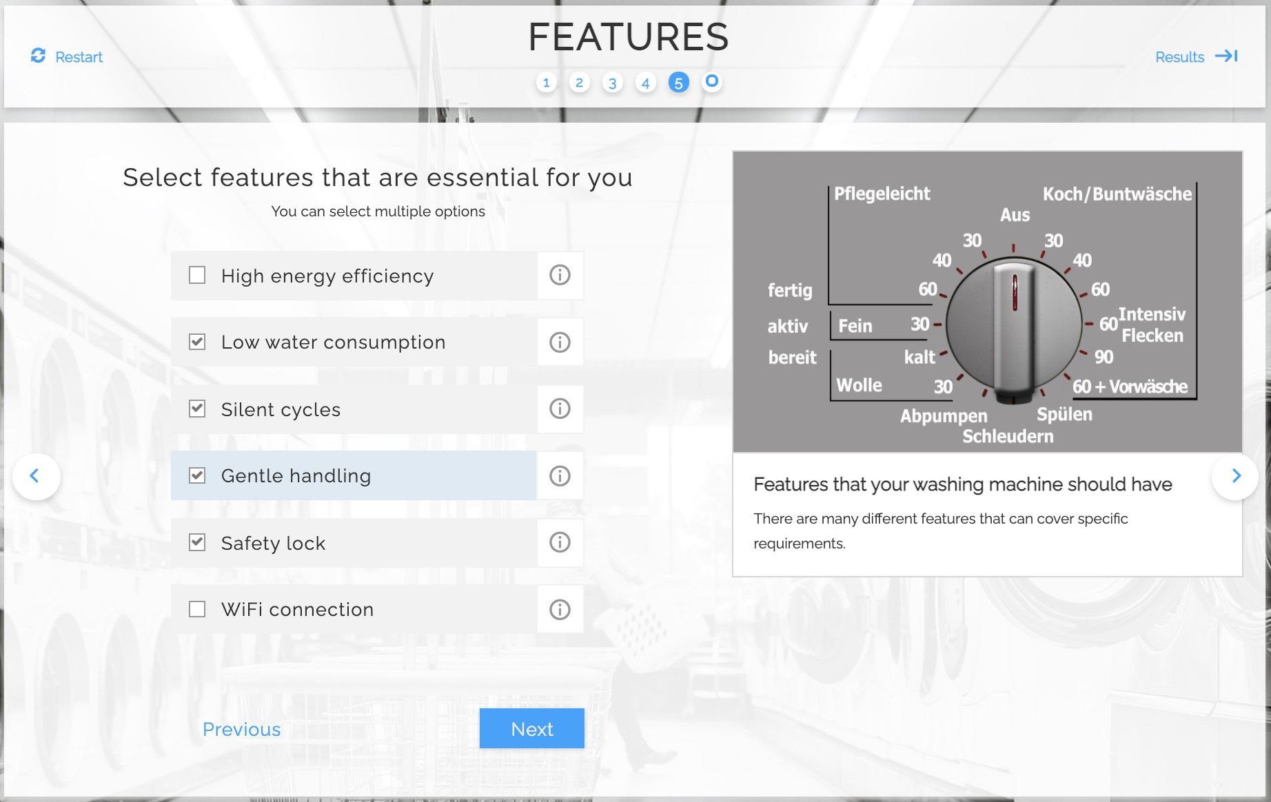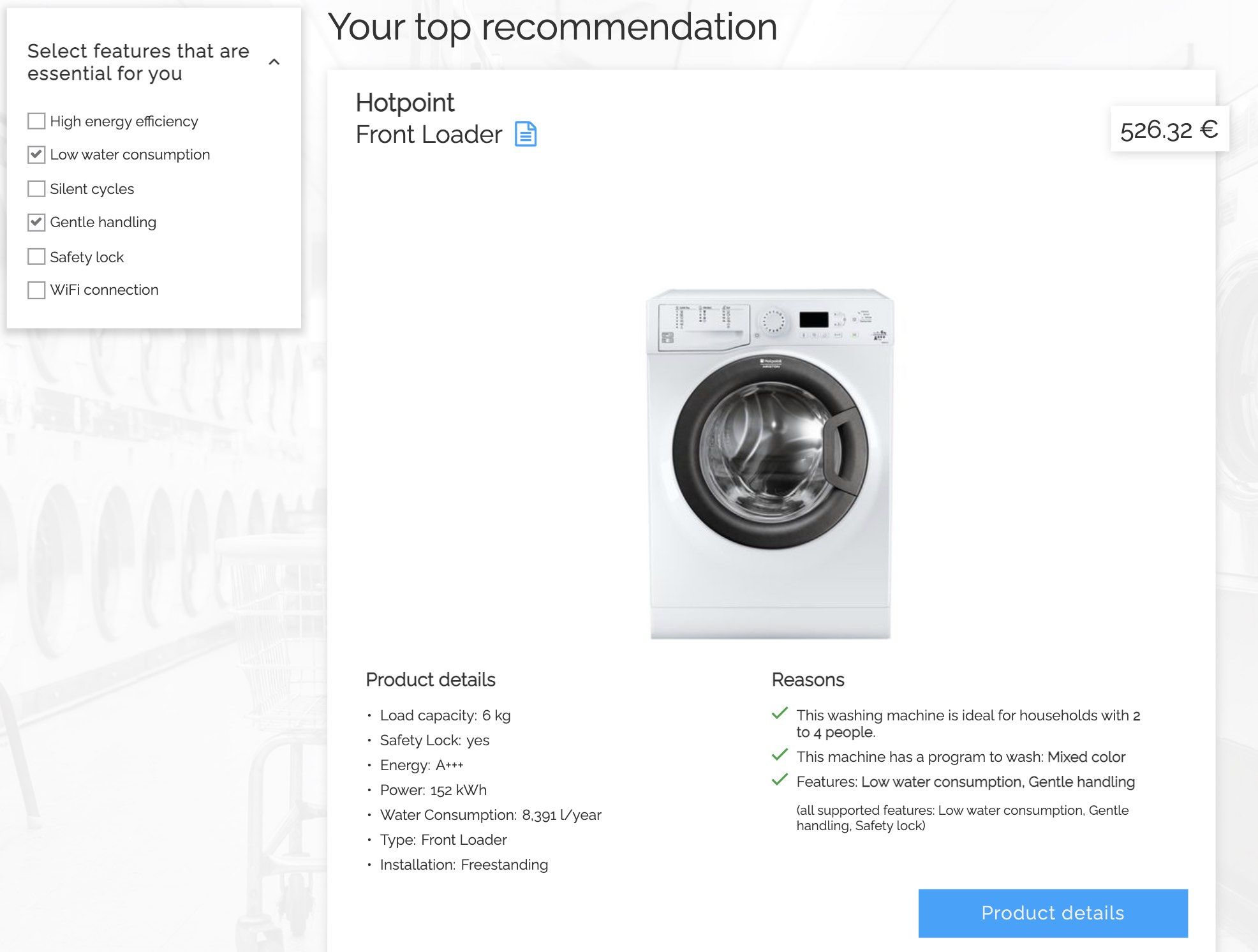 Customers spend a lot of time researching features and trying to get the best deals for white goods such as washing machines. These products are brought once every 5 - 10 years, and is always a big decision for the customer. A digital advisor such as a Washing Machine Guide provides a step-by-step process for customers, allowing them to plan for every need and makes decision-making easier.